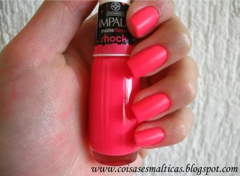 Oi pessoas! Tudo bem com vcs? Estava com uma vontade de passar aquela cor fote, neon, sabe? Resolvi passar o shock, da linha Matte Fluors da Impala:
